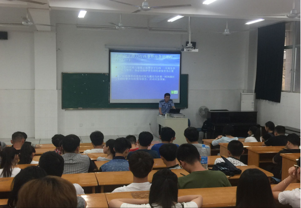 为了让学生树立自我保护的意识,进一步深入了解及掌握自我保护安全知识。近日,学校保卫处特邀茶园派出所指挥室沈警官在新阶梯教室开展“校园安全知识”的专题讲座。此次讲座,沈警官就“如何在校园反暴防恐”、“如何看穿虚假信息诈骗”、“禁毒宣传”等内容展开安全知识教育。