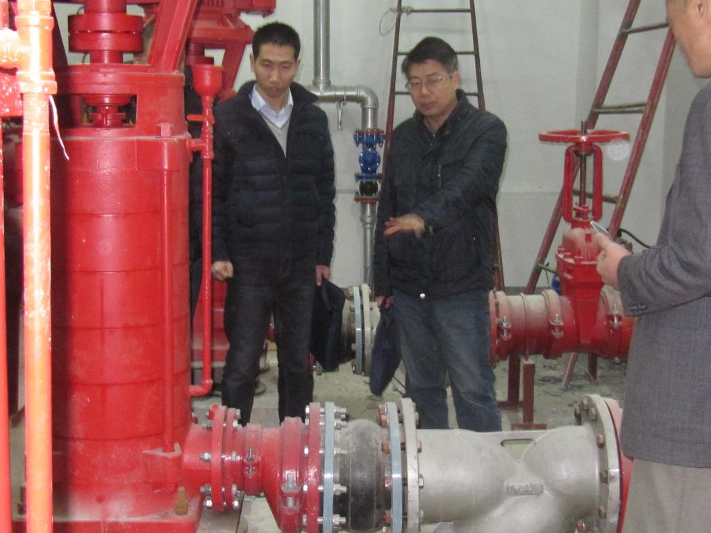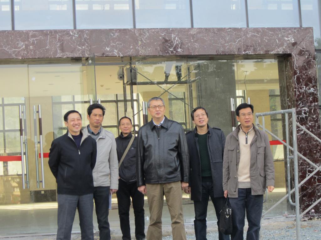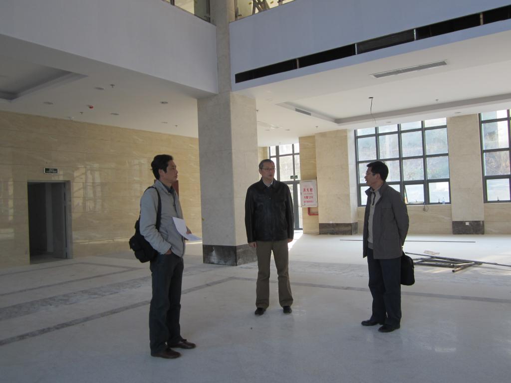 党委副书记夏良玉(左二)在图书办公综合楼指导初步验收工作