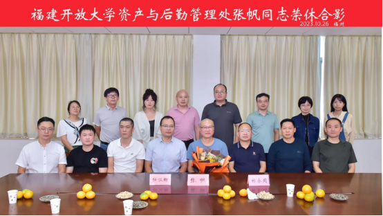莫道桑榆晚,为霞尚满天。2023年10月26日下午,资产与后勤管理处为即将光荣退休的张帆同志举行了一场温馨的欢送座谈会,会议由任汉卿副处长主持,林永周处长出席并给张帆同志赠送纪念品和鲜花。