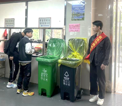 做好共创食安示范城市、反食品浪费宣传工作,安排学生志愿者在餐具回收处进行指导师生做好光盘行动、垃圾分类工作,在学校、食堂醒目位置增加共创食安示范城市、节约粮食、杜绝浪费的提示牌和宣传标语。