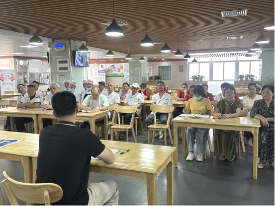 随后,食品安全员姚玮紧贴食堂工作开展食品安全培训,重点围绕安全责任意识、场所和设备清洁维护、安全操作规范等方面,结合日常监督管理中发现的薄弱环节进行阐述。大家纷纷表示受益匪浅,对自身肩负的食品安全责任有了更深刻的理解。