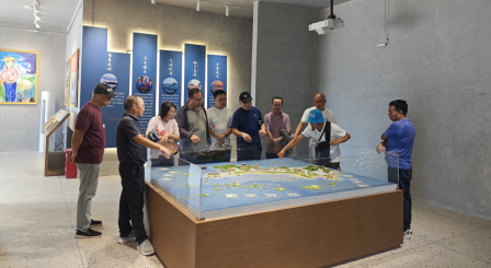 第五站攀登“九重山”。高大的胡守仁石像屹立在山巅,遥望着台湾海峡,守卫着祖国的海疆。沿途经过海军雷达站旧址,废弃的营房、爬满藤蔓的掩体,远处的“乌丘屿”若隐若现,尽情的感受南日岛的自然风光和战地英姿。随后大家还走进了驻岛连队,参观党建主题馆。