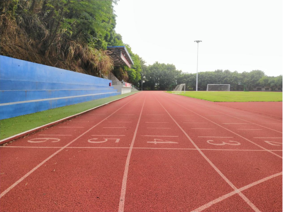 体育场建在金鸡山西北角的半山腰,天然的草皮,红色的塑胶跑道,绿树环绕,算得上是福州最美体育场。这座“山腰体育场”建于上世纪90年代初,为解决全校师生无运动场地的迫切需求,由原铁路单位设计施工,充分发扬铁道兵“逢山开路、遇水搭桥”的技术优势,就地取材,在山腰挖土、山脚填筑,平衡土方,建造出配套齐全的的足球场、环形跑道、主席台、观礼台,不仅美观,而且坚固耐用。