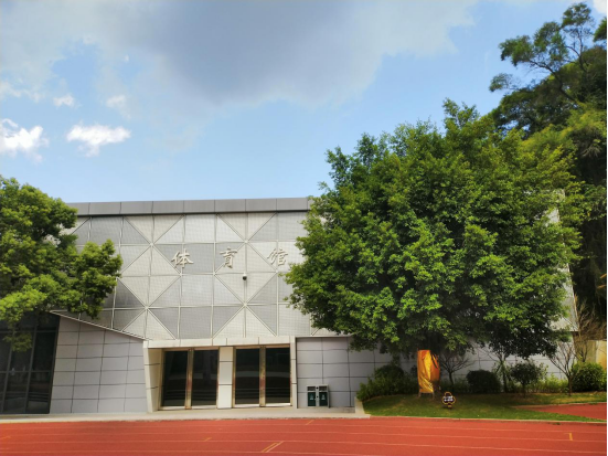 体育馆在学校40周年校庆前修葺一新,外墙采用穿孔铝单板、玻璃幕墙、冷瓷板等浅色系的材料相互搭配,显得虚实结合、简约时尚。体育馆内部分为两个篮球场地,层高约8米,屋顶布设四排工矿灯,地面铺设防潮耐磨的PVC运动地板,内墙墙裙采用木纹吸音板,上部安装电动窗,给人以层次分明,宽敞明亮的感觉。当同学们在体育馆打球时,击球声、跑步声、叫喊声、欢呼声此起彼伏,朝气蓬勃。